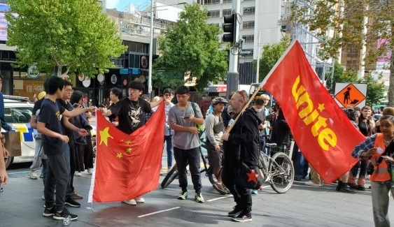 CCP united front supported the stop Asian hatred rally today. Chinese overseas students association and other CCP united front organizations joined the rally and harrass New Zealand Value Alliance’s against CCP protest.