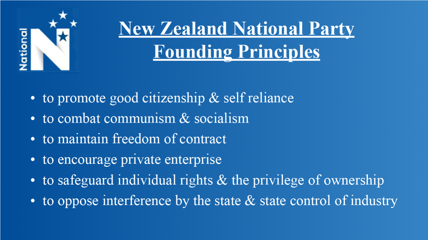 This method, especially given the beautiful simplicity and unquestionable value of Sid Holland’s original principles, avoids the risk of the party sliding to the left and becoming irrelevant. As it has been doing for thirty years or more.
