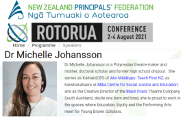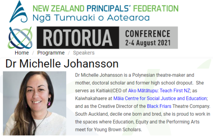 You can see her on Youtube, swaying seductively on stage and dramatically delivering her “10 pieces of advice for young brown people” schtick. She is starring at a New Zealand Principle’s Federation conference at Rotorua in August this year where she will give the opening “keynote” presentation. Amazing event given the Prime Minister’s assertive denials.