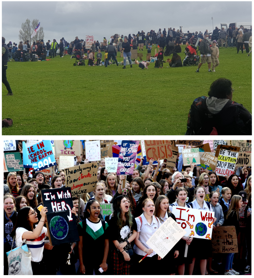 Two different styles of photos. The large empty foreground in the above pic makes the crowd look smaller and the protest limp, while the close in climate change protest pic makes it look dynamic and well attended.