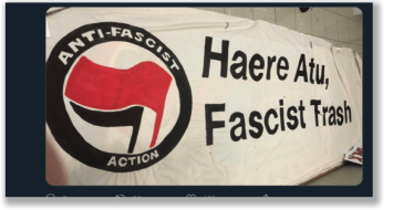 Invert this situation and you have TV One’s Thursday night report on the anti-mandate protesters in Wellington, with Byron Clark taking the part of the unidentified Action Zealandia contributor. Except that Clark is of course an activist from the extreme left or communist sector of the political spectrum.