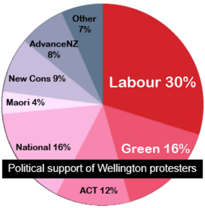 A poll taken of the political views of the protesters by David Farrar’s polling company shows they represent a cross section of the country, with the largest proportion being Labour-green party voters.