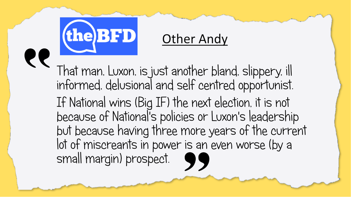 A comment from the BFD shows that discontent with Luxon and National and their slide to the left is widespread